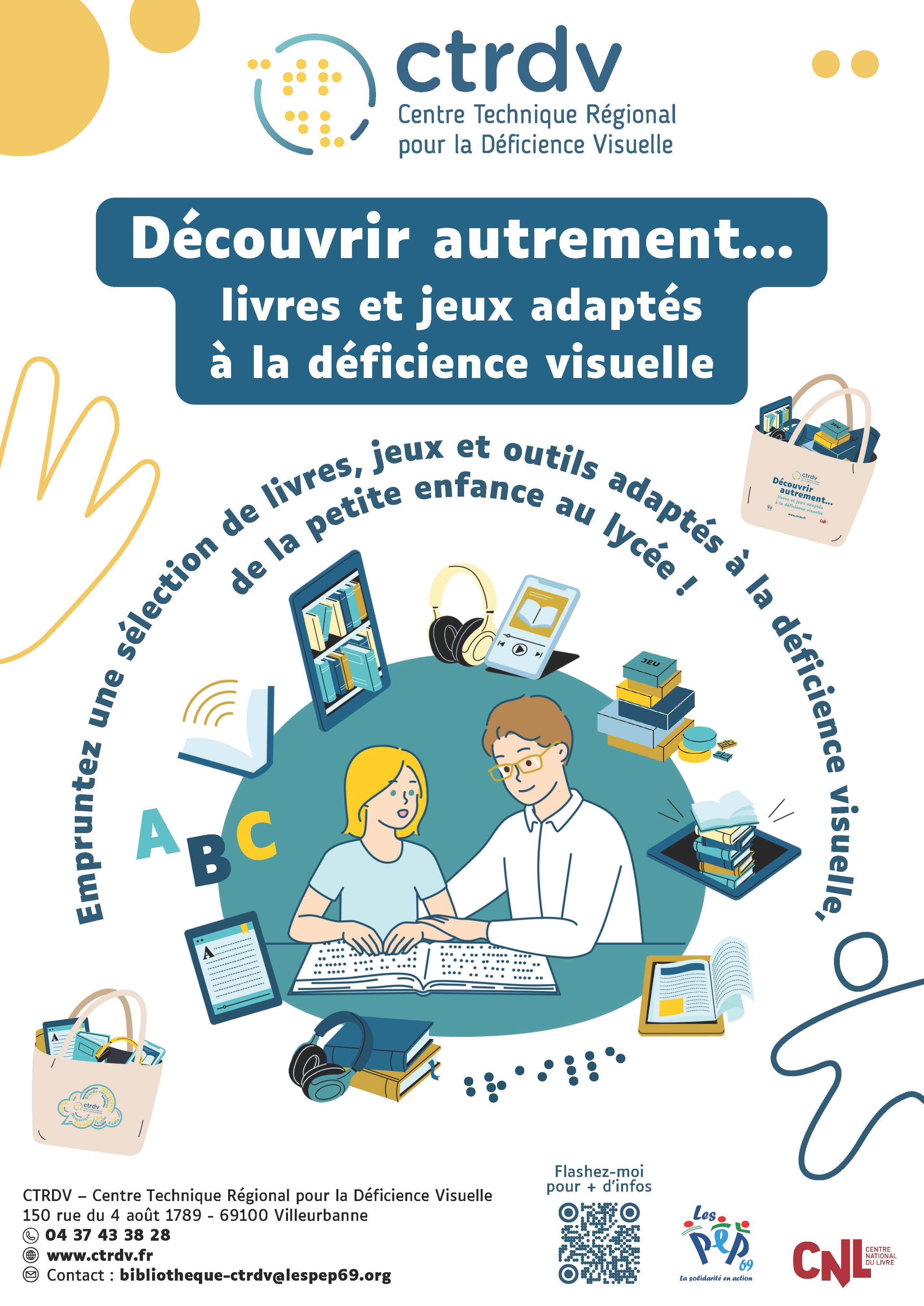 La médiathèque / ludothèque du CTRDV met à votre disposition un ensemble de ressources documentaires et d’informations en lien avec la thématique du handicap, et plus particulièrement de la déficience visuelle