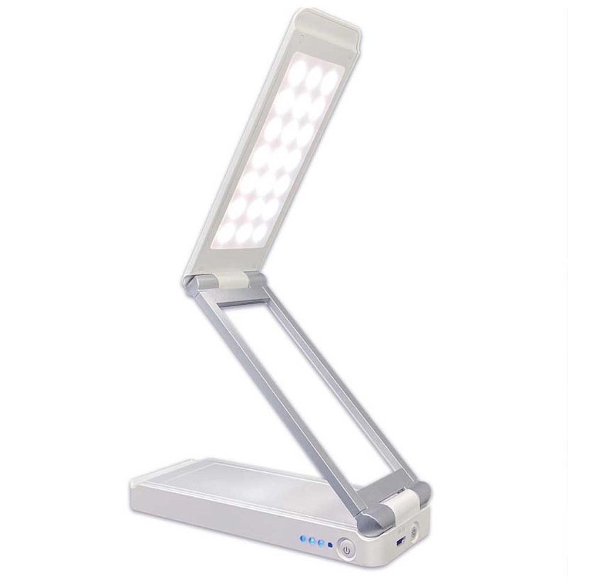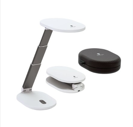 Lampe doté d’une loupe qui permet d’éclairer et agrandir ce que l’on fait, plutôt adaptée aux activités manuelles que la lecture d’après les essais avec nos ergothérapeutes et orthoptiste. Il y a quatre niveaux de luminosité possible et deux lentilles interchangeables d’un grossissement de 1,5x et 2,25x. Le pied garde la position dans laquelle on le place et se fixe à une table à l’aide d’un étau.
